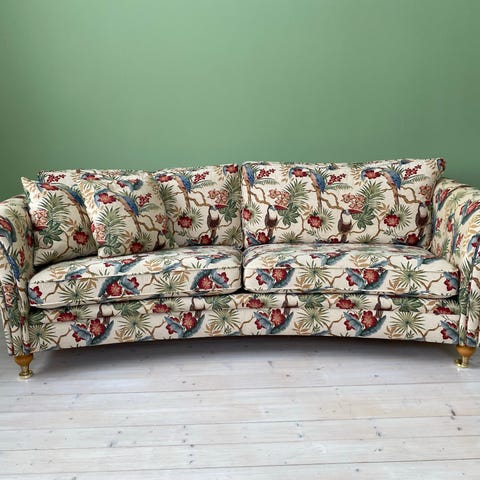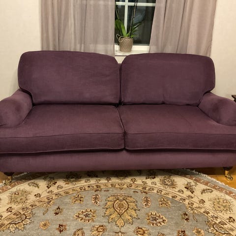 En soffa från Bröderna Andersson i använt men gott skick. Stommen är omklädd hos möbeltapetserare. Fortfarande bra stoppning i dynorna. Soffan upplevs inte som nedsutten.