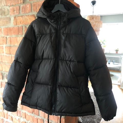 Trendig jacka i stl XS men mer som en small. Gosig, mjuk och varm. Rymliga fickor.,