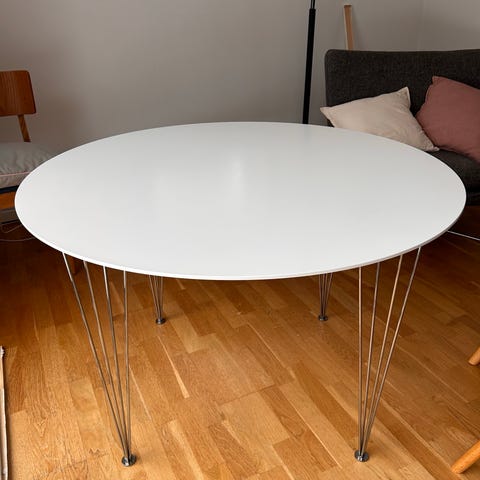 Använt skick, men ser som helhet fint ut (se första och andra bilden). Tittar man nära så ser man att kanterna är lite nötta, någon repa på skivan, och ett märke efter ett par glas som inte går bort. Se övriga bilder.