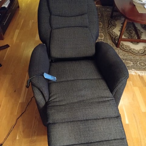 Har främst använt den som fotölj när jag läser, den är otroligt skön att sitta längre stunder i. Den har såklart tecken på användning utifrån att den har en massa år på nacken, men är fortfarande i fint skick.