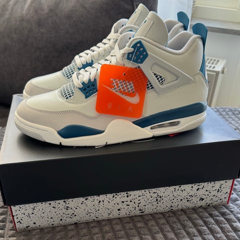 Air Jordan 4 retro off-white / military blue sällsynt modell, använt bara en gång. beställd från SNS (kvitto finns)
