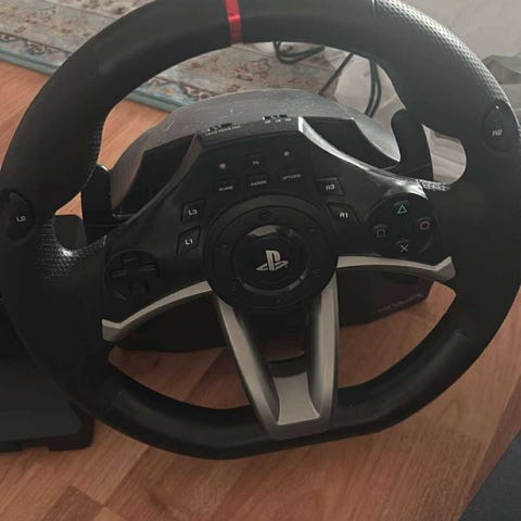 Racing Wheel– ratt och pedaler för PS4. PS3 och PCGer en mer realistisk körupplevelse än vanlig handkontroll. Officiellt licensierad för PlayStation och fungerar även med PS3 och PC ratt och pedaler med stativ i svart färg. Ratten är monterad på ett justerbart stativ med två sidoplattor och pedalställ i metall.