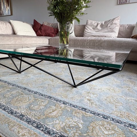 Snyggt glasbord med mässingsben säljes,