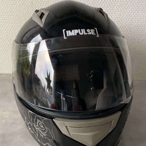 Airoh integralhjälm i svart färg. Hjälmen har heltäckande visir framtill och vadderad insida med hakrem. Utrustad med ventilationsöppningar och uppfällbar frontdel. Passar motorcykel eller moped beroende på storlek och godkännande, som bör kontrolleras på hjälmens märkning.