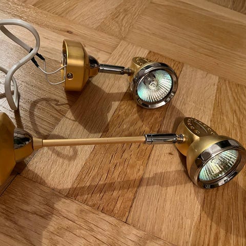 Vägglykta i fint skick med glödlampa som ger fint sken. Har suttit på vägg med fast installation. Kontakt saknas men är lätt att montera. Total höjd 33 cm.