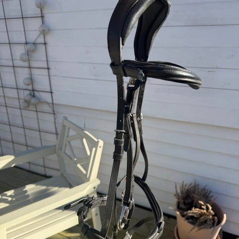 Bild 1: Träns i svart läder, storlek cob.