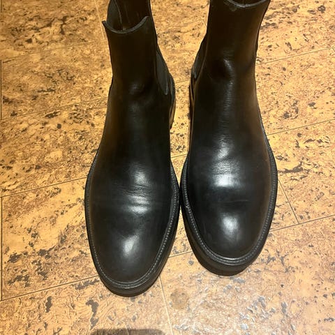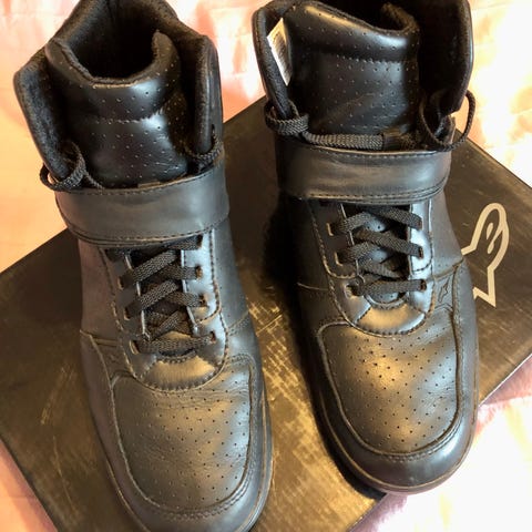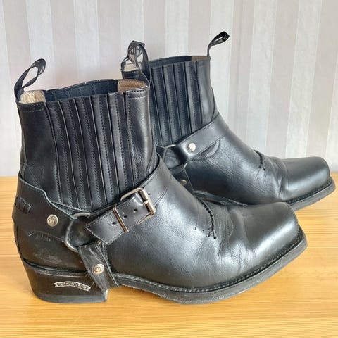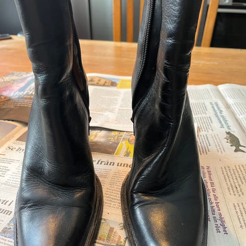 Svarta läderstövlar i motorcykelstuk. För små för mig och lite använda. Köpta här på blocket för en tid sedan. Hela och fräscha. Se bilder.