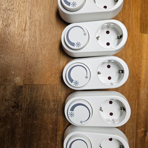Samling vägguttag och strömbrytare i vit plast. 10 dubbla vägguttag samt 5 enkel- och en dubbelströmbrytare för utanpåliggande montering. Passar för elinstallation inomhus där standarduttag och brytare behövs.