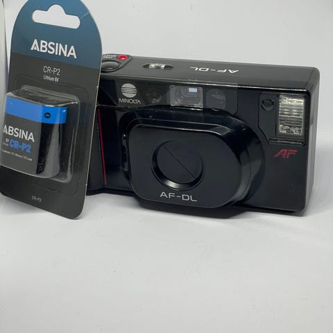 En enkel och fin analog kompaktkamera från Minolta. Denna modellen har en matt metall finish vilket ger den en premium feeling i handen, den har även blixt och lång zoom.