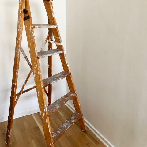 Äldre stege i trä ca 165 cm hög. Finns patina.