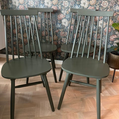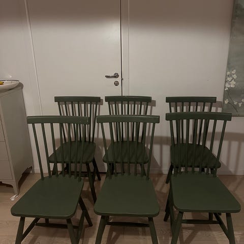 Pinnstolar från MIO. Handmålade mintgröna. Inte originalfärg. Färgen har skavts bort på några ställen.
