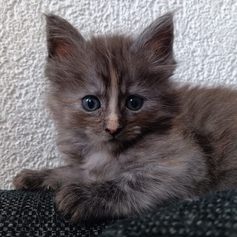 Nu är det bara detta lilla charmtroll som är kvar som vill hitta sitt egna hem. Mamman är 50% Ragdoll o 50% Maine Coon och Pappan är hel Maine Coon. De är rumsrena, sociala o uppväxta i en riktig familje miljö med massa gos. Vana vid andra katter, hund och barn. Första bilden och bild nr 2 har vi lilla tösen som är en mörk grå sköldpadda o hon är en riktig kelgris. Bild nr 3 är deras mamma o sista bilden är på pappan. Har du det rätta hemmet med massa bus o kärlek så tveka inte att tinga din vän för livet redan nu, en handpenning läggs på 1700kr som inte fås tillbaka pga ånger och dras av på köpesumman vid leverans. De är vaccinerade x 1, chippade, avmaskade o veterinärs besiktade när dom är redo att hämtas. De är klara för leverans den siste februari då dom är 12 veckor.