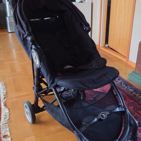 Vagn som går att fälla ihop vid tex bilresa. Instruktionsbok och förvarings väska finns kvar och medföljer om en önskar!