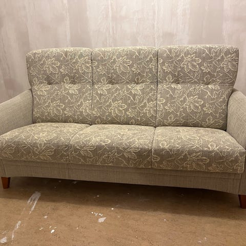 Fint skick. Skumgummit på ett armstöd flyttat lite på sig (se bild).