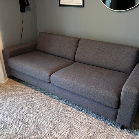 Jag säljer min ekonomiska och vackra soffa från Bolia i Scandinavia-serien. Den kan enkelt utökas till en bekväm säng på 140 cm × 200 cm.