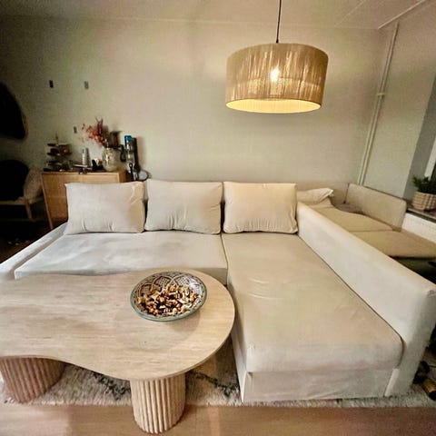 Soffan är i bra skick utan skador eller fläckar, det finns inget att klaga på. Det har aldrig funnits några husdjur eller barn i huset. Alla kuddfodral är avtagbara för underhåll. Fyllningen består av kallt memoryskum.
