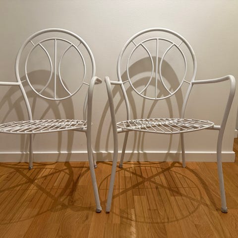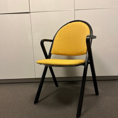 15 stycken hela och fullt användbara stolar med metallben. Vissa stolar har lite ytlig rost på metallen. Plasten är hel, vissa lätt flammiga fläckar syns på det oranga.