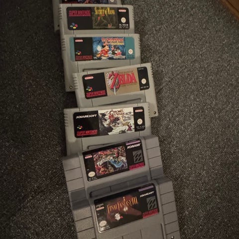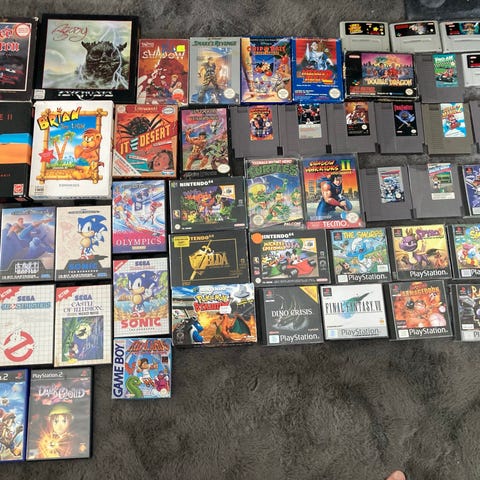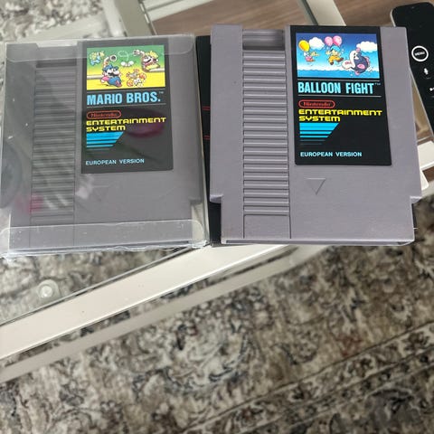 Nintendo NES spelkassetter för 8-bitars konsol. Paketet innehåller fyra spelkassetter avsedda för Nintendo Entertainment System (NES). Passar för användning med original 8-bitars Nintendo-konsoler och kompatibla system.