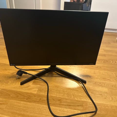 Skärm på 23 tum i svart utförande. Passar för användning med stationär dator, exempelvis för spel ,vardagligt bruk. Skärmen står på ett stabilt stativ och ansluts med kabel till dator eller annan enhet som stödjer extern bildskärm.