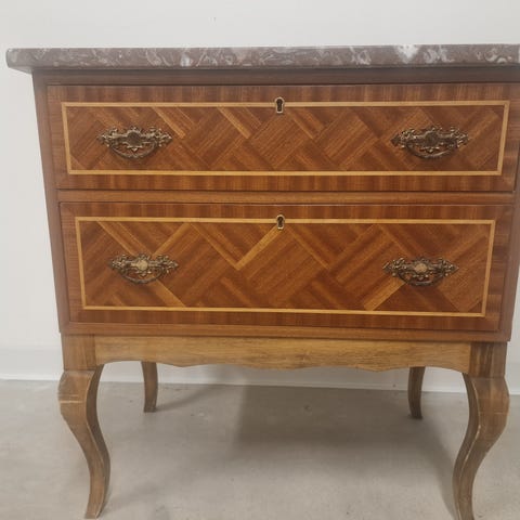 Byrå med stenskiva i brun/vit marmor, rokokostil 1900 tal