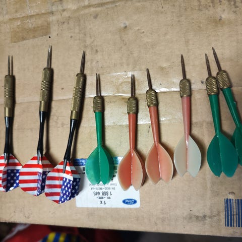 Säljer ett set Harrows Club Brass 3 dartpilar. De är varsamt använda och i gott skick. Perfekta för nybörjare eller dig som vill ha ett stabilt och pålitligt set för hobbyspel.