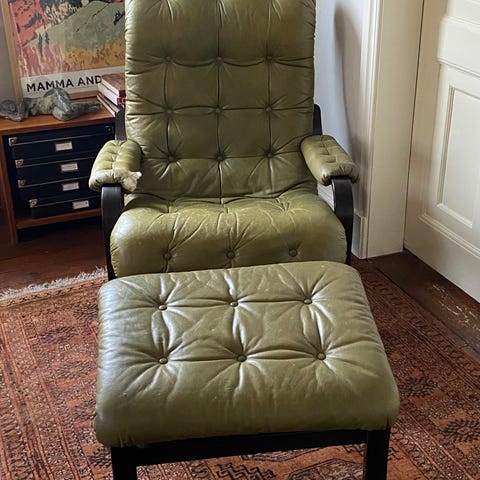 Søren Lund fåtölj med fotpall svart läder