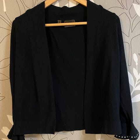 Tuff svart blus säljes. Kort ärm med slag. 2 st bröstfickor. Storlek 40. 100% bomull. Märke: Miss Milla.
