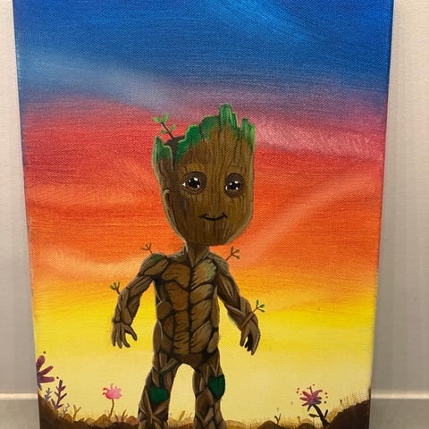 Föreställer Groot, utförd i pärlor och monterad i kruka.