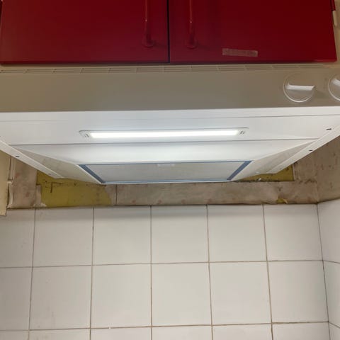 Cool förvaring med klarröda plastlådor. Två av lådorna har en liten bit av hörnet gått av.