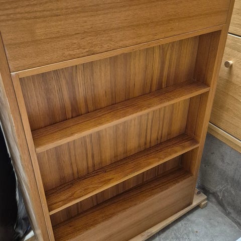 Kökshylla 70-tal retro trä och röd plast