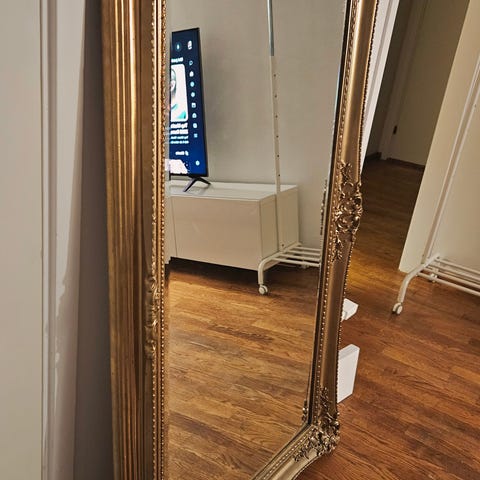Stor spegel i rostig guld färg.