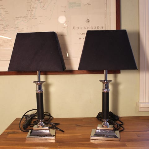 Bordslampa i metall med rund fot och böjd lampfot. Lampan har en vit konformad lampskärm i glas och E14-ljuskälla. Strömbrytare sitter på sladden. Passar som läslampa eller allmänbelysning på skrivbord, sängbord eller sidobord.