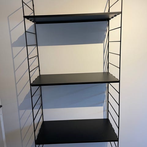 Vägghylla som påminner om brandstegarna på höghusen i New York.