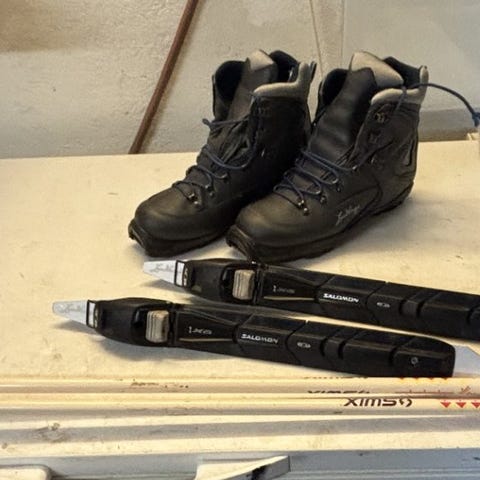 Försäljes ett par långfärdsskridskor, Pikmakarn svart, med lös häl. Pjäxor Crispi Stetind, gore tex, storlek 43.