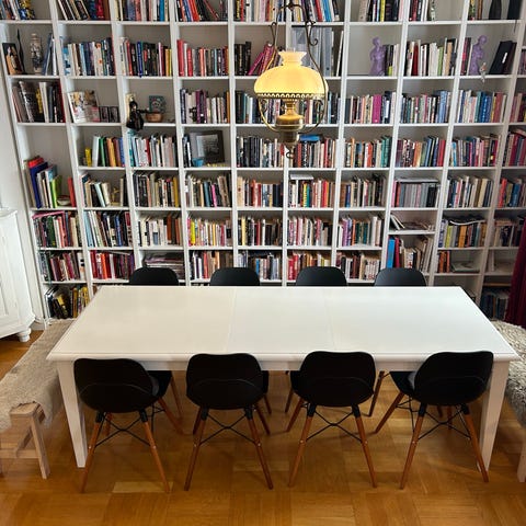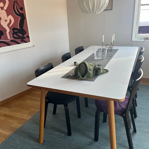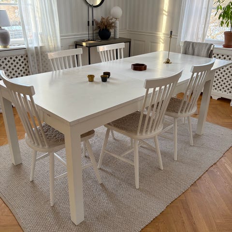 Matbord med hel skiva samt två förlängningsskivor