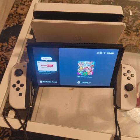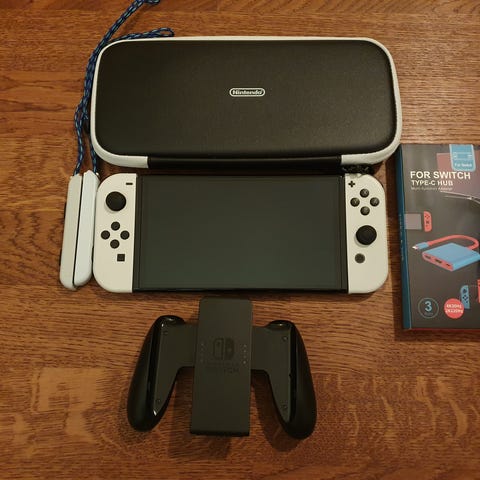 Nintendo Switch OLED spelkonsol vit med väska och tillbehör