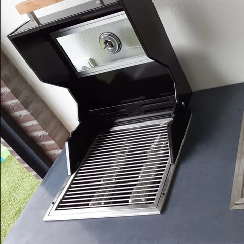 Stor grillyta med en bredd på 60 cm och ett djup på 42 cm. Grillen har dessutom 2 hyllplan med hela bredden och 22 cm djup.