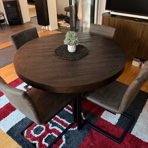 Länk för mer info: https://www.mio.se/p/woodenforge-matgrupp-med-4-barstolar-kansas/218586?id=M2196857