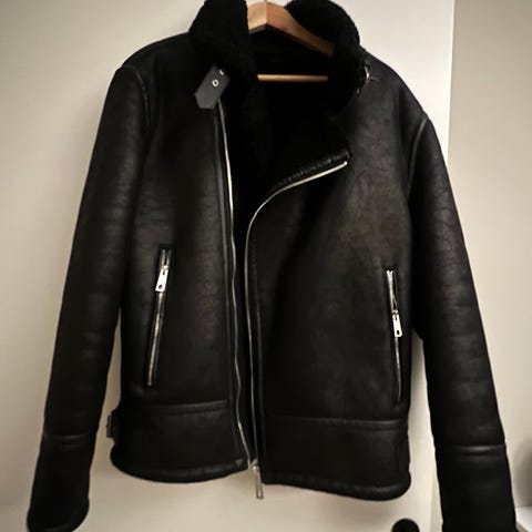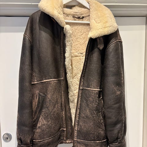 Skinnjacka av flygarmodell i tjockt fårskinn. Köpt på danska Avi Leather. En jacka som värmer även i -20 grader. Storlek 48 som motsvarar typ XXL. Helt ny och endast provad men tyvärr för liten för mig. Två ytterfickor och två innerfickor med blixtlås.