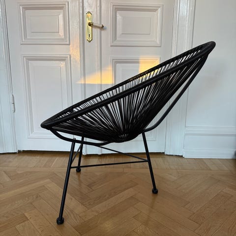 Fatboy Rock´n roll gungstol. Bredd 88 cm. Tyget är grått som bilden men i bomull, i använt och fint skick men med lite solblekning, inget man störs av. Skönaste möbeln jag ägt men på vår balkong tar den för stor plats. Kan fixeras så att den inte gungar.