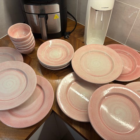 Den har några få ytliga sprickor i glasyren men inget som förstör den i sin helhet. Detta är sker alltid med Mateus skålarna med tiden