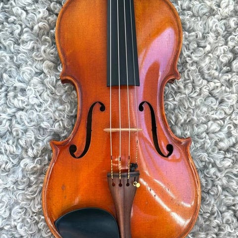 Fiol (3/4) i från Gear4music i använt skick. Axelstöd, stråke och fodral medföljer. Fiolen är använd endast en termin. Perfekt för nybörjaren, passar 9-12år. Ena axelbandet på fodralet har lossnat.
