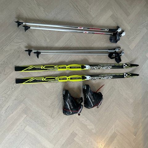 Madshus längdskidor med pjäxor och stavar
