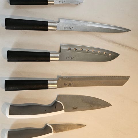 Sex stycken knivar i serien Wasa/Vasa med rostfritt stålblad. Kniven är ca 22 cm lång.