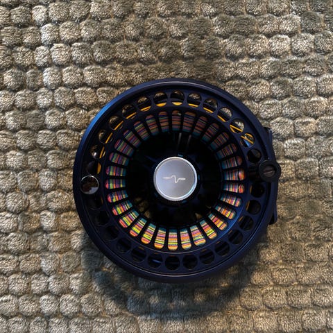 Abel flugrulle i svart utförande. Rullen har perforerad spole och vevhandtag samt två synliga skruvar på framsidan. Levereras med röd vadderad Abel-fodral med svart kant. Passar för flugfiske där en kompakt och robust rulle önskas.