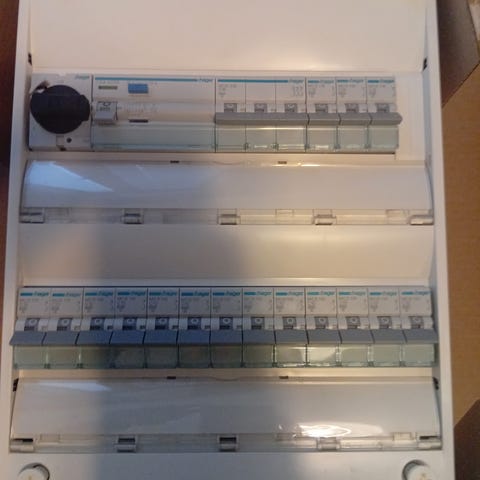 Oanvänd Hager elcentral med jordfelsbrytare och 14x10A
