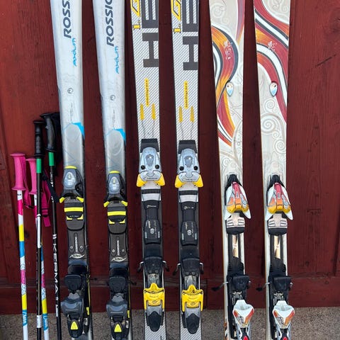 Edsbyn längdskidor för barn 130cm med kabelbindning och stavar