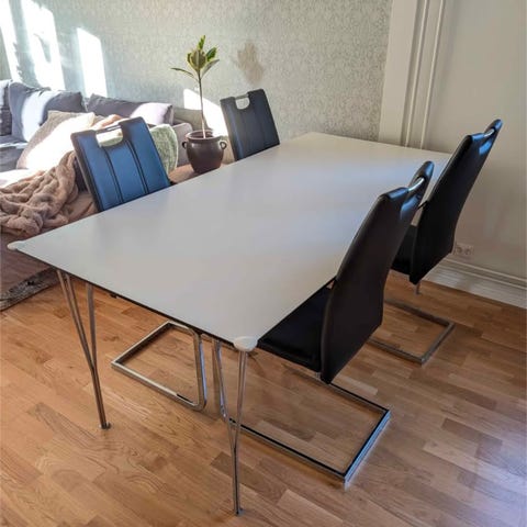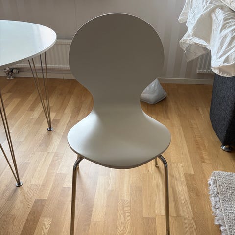 6st väl använda stolar. Se är hela och fungerar utmärkt. Visst slitage med några skavmärken på någon av stolarna. Stolarna är stapelbara och går att måla om om man vill det