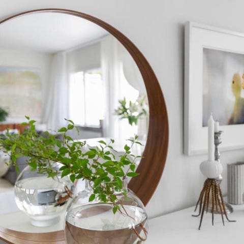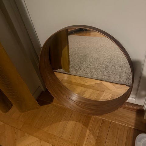 Säljer en IKEA STOCKHOLM spegel i valnötsfaner, 80 cm. I fint skick.