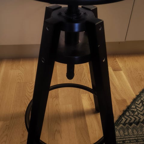 Max bredd (benen) är 50 cm och stolssitsen har rund diameter på 37 cm